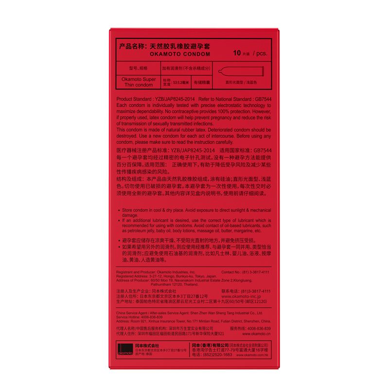 【避孕润滑】冈本激薄10只装(实物产品包装以主图为准)